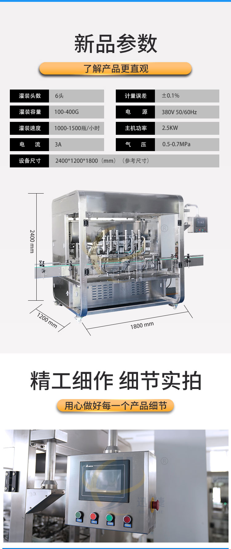 辣椒醬灌裝機采用活塞式灌裝原理,適用于調味品中帶顆粒并且濃度較大的辣椒醬、豆瓣醬、花生醬、香菇醬、果醬、牛油火鍋底料。