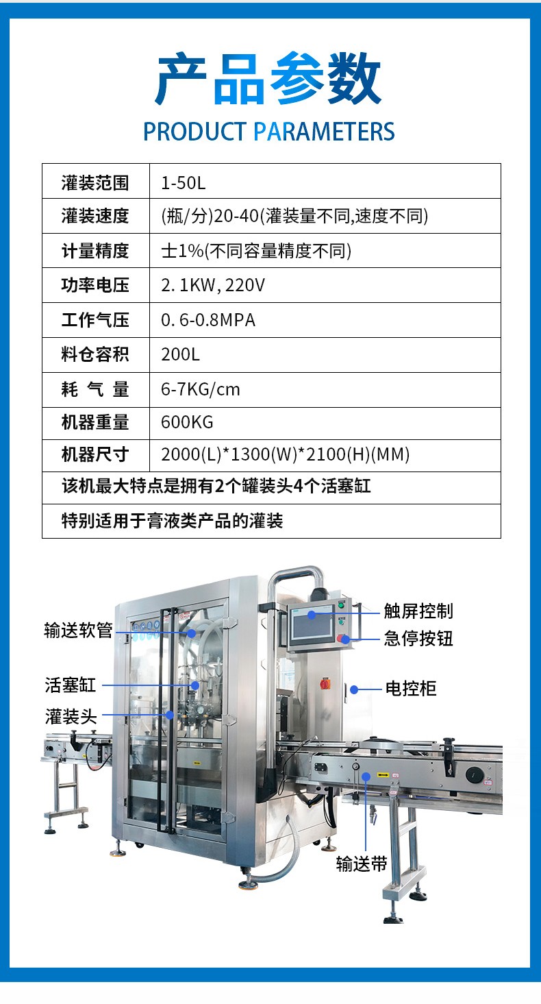 跟蹤式調(diào)味醬灌裝機(jī)設(shè)備配置定量灌裝、定液位灌裝兩種方式,計(jì)量誤差2克。定量灌裝保證每一瓶的灌裝質(zhì)量。