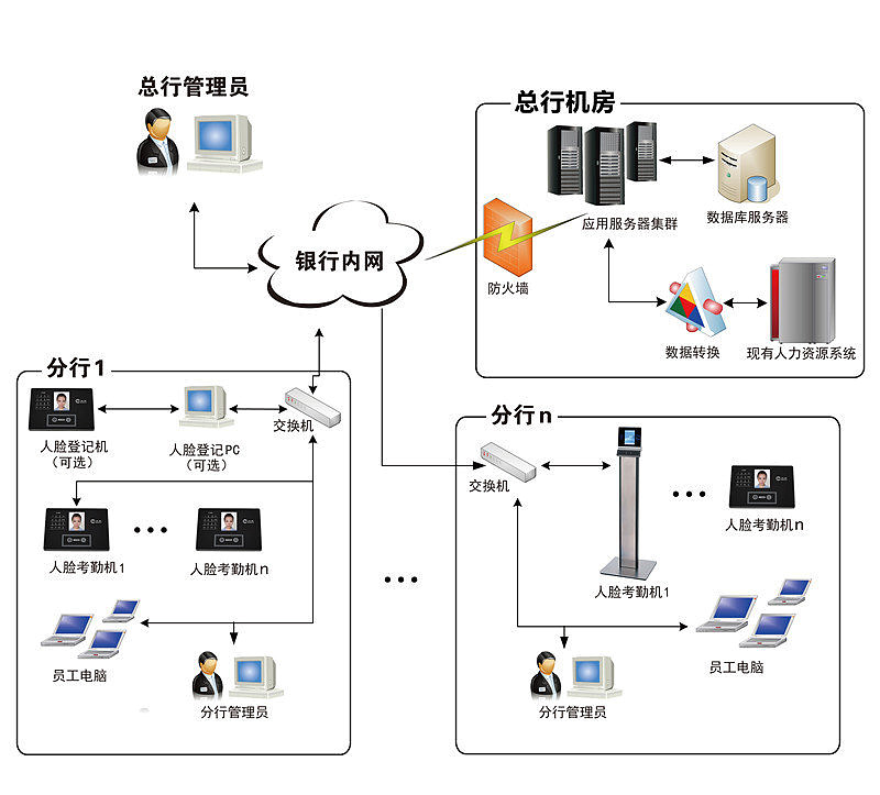 · 考勤信息實(shí)時(shí)上傳,形成總行和各分行的有效數(shù)據(jù)網(wǎng)絡(luò)